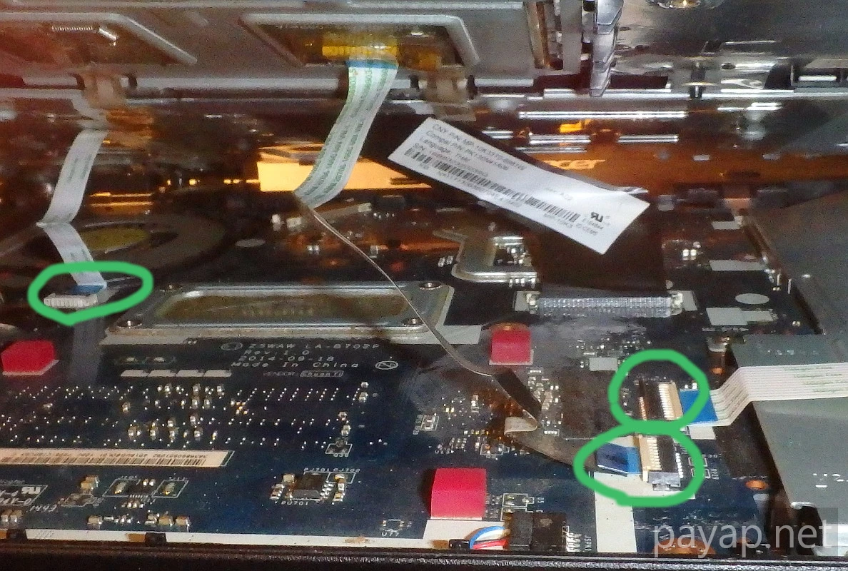 3か所のケーブルを外せば外せばキーボートを外せる。