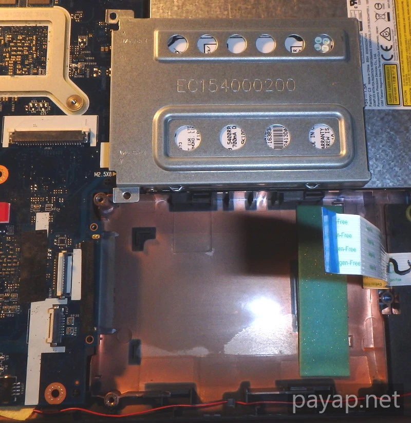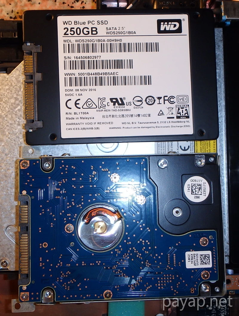 保障期限の切れたノートPCなのでハードデスクを交換してみる。 ハードディスクはチエンマイパンティーププラザの2FでWD BLUE 250GBを3,090Bathで買う。