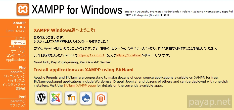 無料で MariaDB、PHP、 Perl を含んだ、Apache ディストリビューションです。XAMPP オープン ソース パッケージは、インストールと利用が簡単にできるよう設定されています。